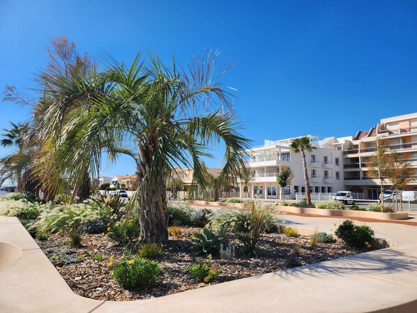 Die Wohnanlage "Les Jardins de la Clape" liegt im weitläufigen Viertel "Les Foulquines Basses". Das Viertel verfügt über viele Grünanlagen, einen Kinderspielplatz und liegt nur 2 Minuten zu Fuß vom großen feinen Sandstrand entfernt. Die Restaurants und Geschäfte von Narbonne-Plage sind in 5-10 Minuten zu Fuß zu erreichen. Ideal für Familienurlaub oder als Ausgangspunkt für Ausflüge in das kulturell und geschichtlich reiche Hinterland.