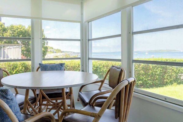 Our cottage quite literally sits on the ocean, its a stones throw away from the ocean! All 3 bedrooms are decent in size and equipped with closets. Our vintage styled kitchen opens up to the living room nicely which makes it a great space for hosting. Our favorite room of the house is the sun "three season" room off the living room. Its a guest favorite! :) While we love the interior the exterior complements the space nicely. With both a back and front yard most guests tend to gravitate towards the front yard for 360 degree ocean views. The full bathroom has been recently fully renovated.