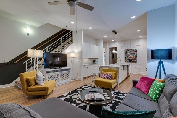 Giant Luxury Home in the Heart of Nashville ! Ample separate sleeping arrangements for your BIG group ! vanity bars. Walk or very short Uber to ALL the places ; Broadway, the Symphony, the country Music Hall of Fame, etc ! Come party on our rooftop for the pregame and enjoy all the convenience of downtown Nashville! 🎸🌆