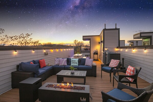 Diese Häuser sind alles, was Sie wollen. Frisches Interieur, coole Technologie und durchdachtes Design. Die großen, offenen Grundrisse und das geräumige Interieur machen die Räume perfekt für Gruppen, die zusammen reisen. Es gibt viele Sitzgelegenheiten und Betten für alle, ohne sich beengt zu fühlen. Der Hingucker hier ist definitiv die riesige Dachterrasse mit Panoramablick auf die Innenstadt von Nashville. Es ist einfach spektakulär! Sie werden auch den Gaskochgrill lieben, der für Ihre berühmten Grillrippen bereit ist!