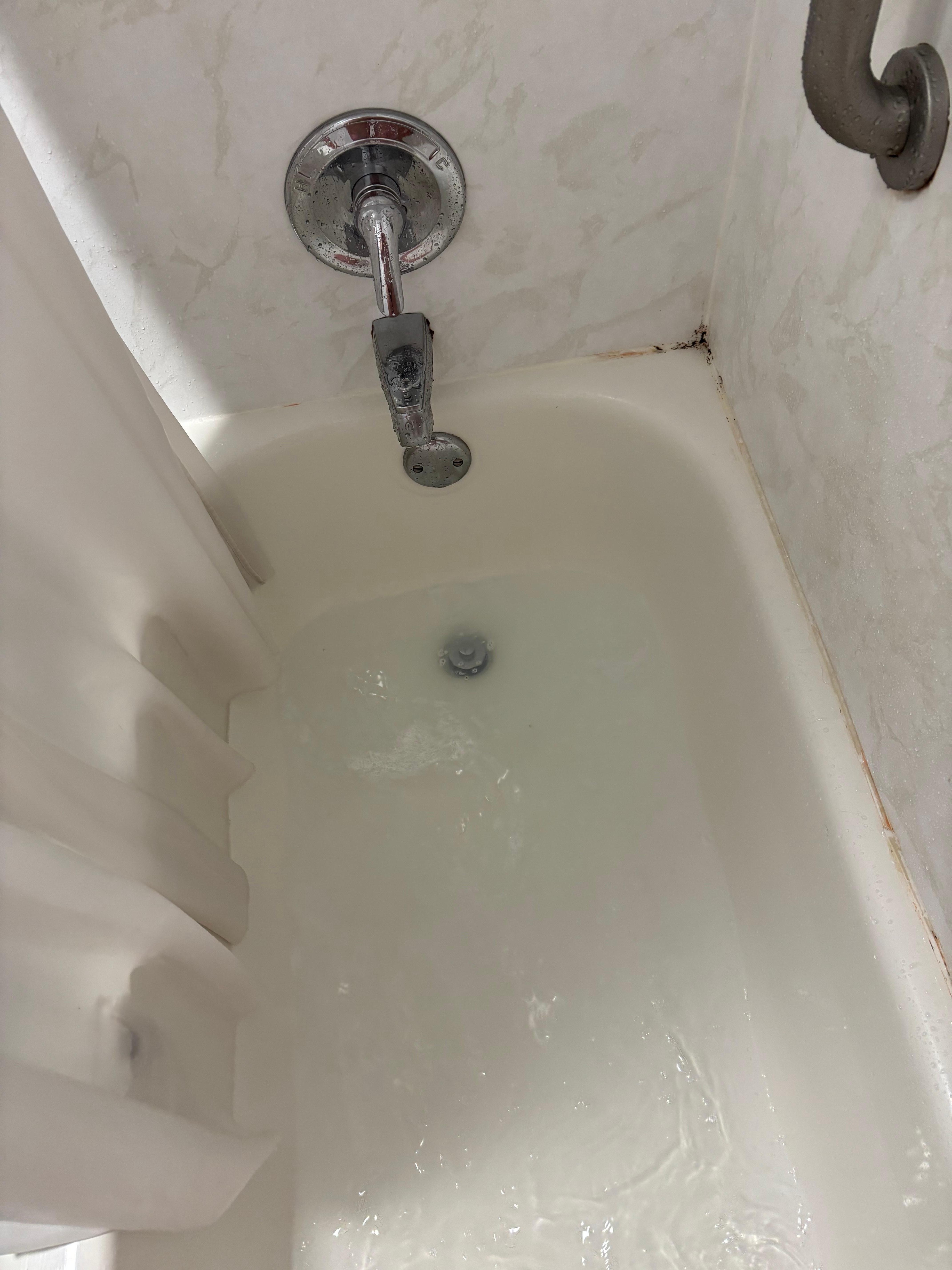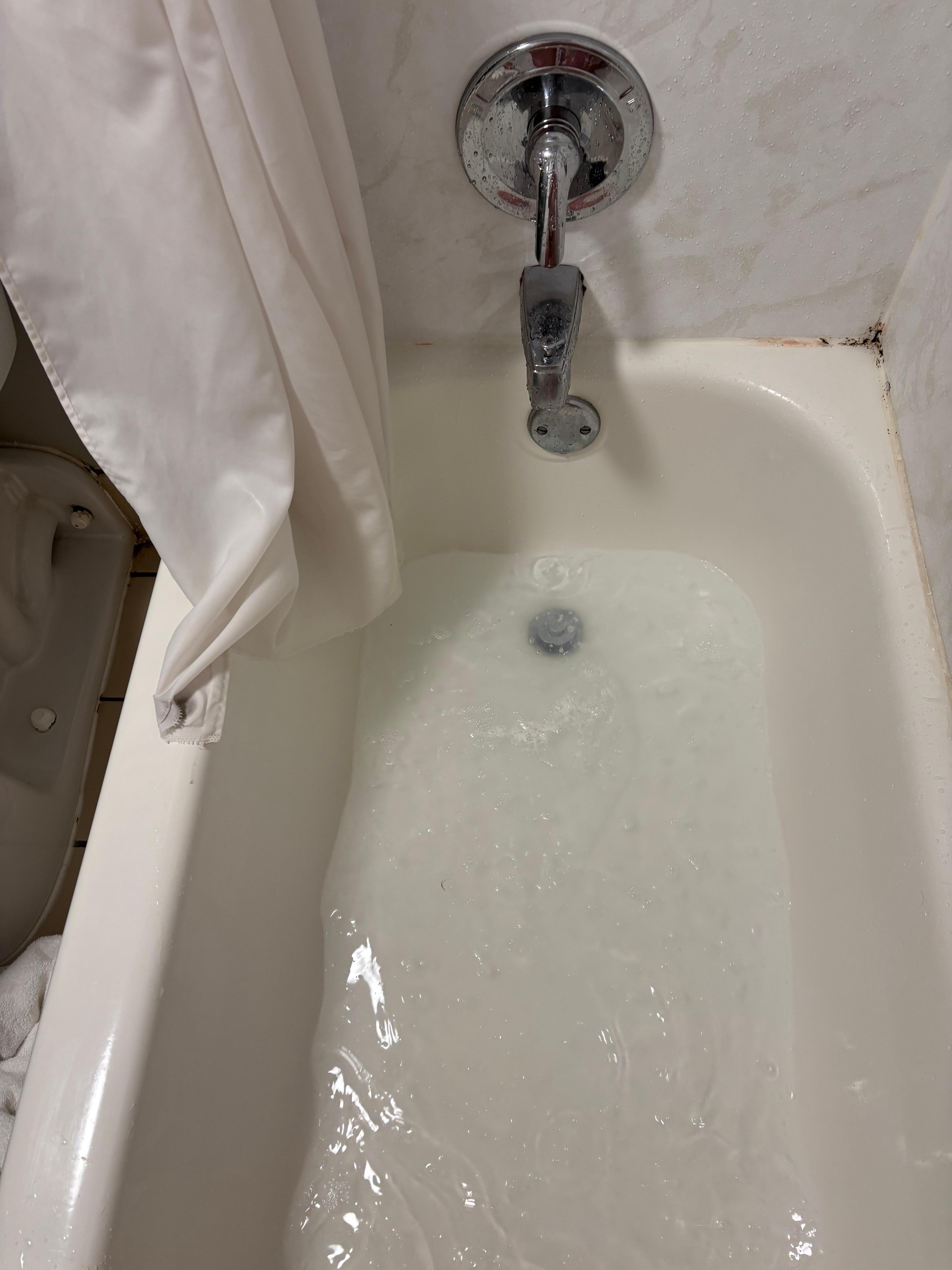 Not to bad. Could be cleaner outside. Our bathroom tub held a lot of water while showering.