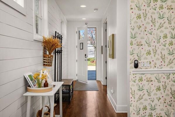 Our charming home is one side of a a new duplex build in one of Nashville’s fasting growing neighborhoods, Woodbine! With some of the best local coffee shops (Red Bicycle, Sam & Zoe’s, District, and Tempo - to name a few!) and restaurants , you’ll love the convenience to downtown, but the quiet of the neighborhood. The design of the home features shiplap walls, floral wallpaper, a bright, airy kitchen, and outdoor living space that looks out over tons of green grass and trees with a spacious backyard.