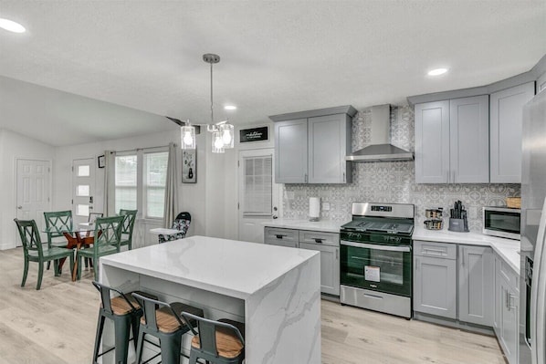 This beautifully remodeled 4-bedroom, 2-bath home in Nederland, TX, offers luxurious comfort and modern convenience. Boasting 2 spacious living rooms, each bedroom features a king-size bed and a smart TV, ensuring everyone's relaxation and entertainment needs are met. The home comes fully stocked with towels and linens, making your stay hassle-free. Outside, enjoy a fenced yard with a BBQ pit, perfect for outdoor gatherings and leisurely evenings. The fully equipped kitchen completes this inviting retreat, providing everything you need to create delicious meals during your stay.