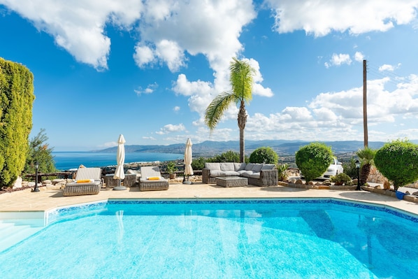 Overview Couples Retreat is the ultimate choice for those seeking a luxury retreat in the heart of Cyprus. With its modern design, heated pool (charges apply), hot tub, and magnificent views, it offers an unforgettable escape where you can bask in the luxurious Cyprus Sun. Book your stay now for an experience like no other... The open-plan living area is bright, spacious, and elegantly furnished, offering stunning views of the Akamas Bay. With sleek furniture and many amenities, it's the perfect space to relax and unwind. High-speed Wi-Fi ensures you stay connected, should you choose to. Dive into the lap of luxury with your very own private heated pool (additional charges apply), providing year-round enjoyment. The large 8m x 4m pool features inviting walk-in steps for easy access and a wonderful place to cool off under the sun. Take a refreshing morning swim or a moonlit dip as the pool shimmers under the Cypriot stars. Every inch of this villa exudes luxury. The kitchen is fully equipped with high quality appliances, and a stylish breakfast bar. Indulge in the ultimate relaxation with your private hot tub (additional charges apply), the ideal spot to soak in tranquillity while gazing over the Mediterranean. Private Heated Pool Dive into the lap of luxury with your very own private heated pool, providing year-round enjoyment. The large 8m x 4m pool features inviting walk-in steps for easy access and a soothing ambience.