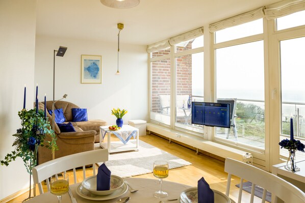 Das Besondere dieser Unterkunft ist der einzigartige Panoramablick aus der 1. Reihe über die Lübecker Bucht, im Westen die Hafeneinfahrt von Neustadt, dann geht der Blick über die Ostseebäder Sierksdorf, Haffkrug, Timmendorfer Strand, Niendorf, Travemünde bis zur mecklenburgischen Küste im Osten. Auch nachts ist der Horizont nicht dunkel, sondern Sie sehen dort die beleuchtete Küstenlinie. So wird Ihr Urlaub hier in allen Jahreszeiten interessant und erholsam. Den Lifestream meiner Webcam sehen Sie auf der Seite penthouse-ostseepanorama.