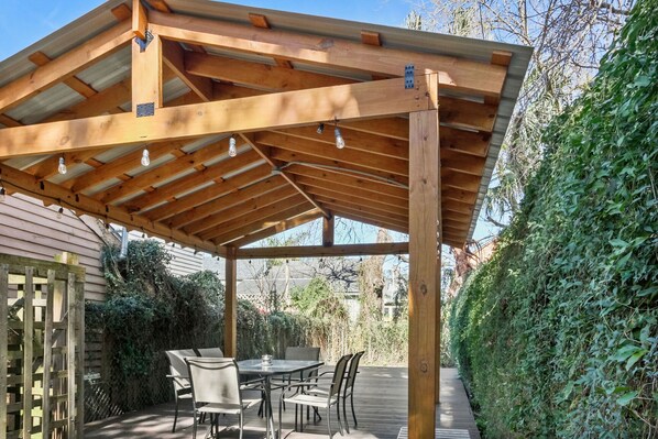 Tucked one block into the Marigny on a quiet street only minutes walk to either Frenchman St or the French Quarter, our large one bedroom ,living room, full kitchen with seating, washer dryer, and rear sun room/office/den/study overlooking spacious deck and rear yard.. Perfect for your extended stay!