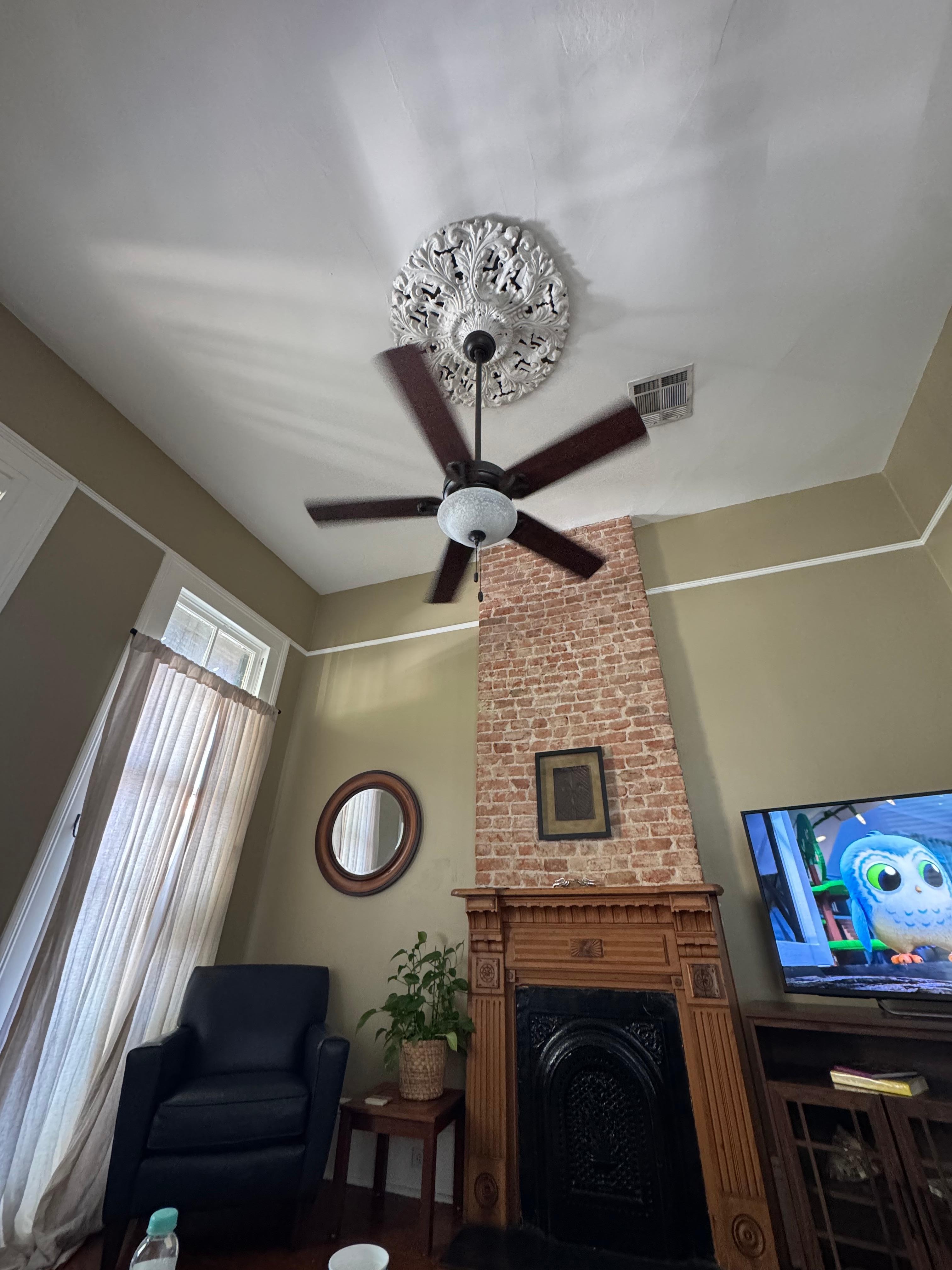 Our Victorian-era “shotgun-style” double allows you all the privacy of your own place because the home is split down the middle with you on one side and us living on the other. The front two rooms are bathed in natural light from the large windows, where the ceilings are adorned with giant decorative medallions, and relax with our 56-inch TV or surf the internet with our high-speed Wi-Fi.