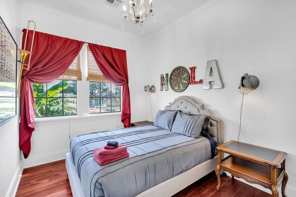 This spacious, newly-renovated property in the coveted Bywater area was built around 1900 and spreads out across 2 floors with 5 bedrooms (6 total beds), 2 full baths (one with a jacuzzi tub), two separate living rooms, and plenty of space for large family vacations, bachelor or bachelorette groups or a couples` retreat.