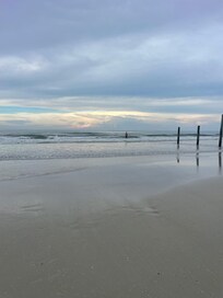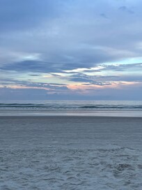 The condo building is older, but this unit is fully updated. Our family stay here contributed to a perfect holiday weekend. We traveled w our two adult children, so full size beds in the second bedroom were a huge perk! We loved being on the first floor to get easy access to the beach. So nice not to get in an elevator or climb stairs w all of your beach gear…you just walk right out of the sliding glass doors and you are there. This unit is also part of a single story wing, so no neighbors above or below for added privacy and noice control. Ceiling fans in each room, including the back patio, were much appreciated to keep spaces cooler. Water pressure in the showers was amazing! Better than what we have at home. Plenty of towels, dishes, pots and pans were available. We did have to run out for shampoo, body wash, tissues, toilet paper, hand wash and paper towels, as these items were not provided. But, no big deal, considering how great everything else was. Would suggest providing a hair dryer in each bathroom. Bummed that I didn’t bring mine, and certainly didn’t want to go buy one. Thank you for a wonderful stay! We will definitely be back!