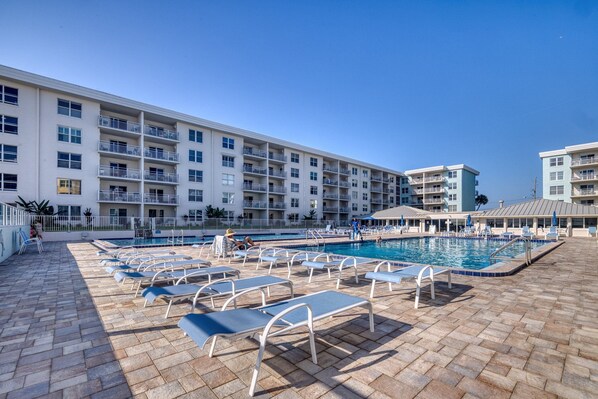 Sea Coast Gardens III offers a family-friendly, direct oceanfront setting on the car-free beach. Explore nearby attractions like shopping, dining, and 27th Avenue Park, featuring playgrounds, racquetball, and basketball courts. Dive into the expansive oceanfront pool deck boasting 2 pools (1 heated seasonally), 2 kiddie pools, shuffleboard courts, and a barbeque area, perfect for relaxation and recreation. Don't miss out on winter senior activities, adding a touch of community and fun to your coastal getaway.
