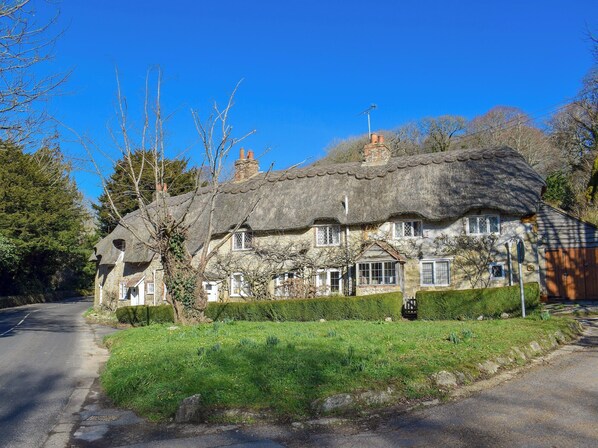 Bathroom: Roll Top Bath, Cubicle Shower, Toilet. Electric central heating, electricity, bed linen, towels and Wi-Fi included. Travel cot and highchair. Enclosed lawned garden with summerhouse, sitting-out area, garden furniture and barbecue. On road parking. No smoking. Please note: There are 16 steps and a sloping bank in the garden.. This charming Grade ll listed thatched cottage, the end one of a row, is located along the village road, close to the local shop, post office and pub serving food. Having been lovingly restored and modernised, this delightful holiday cottage offers homely and comfortable accommodation, with features such as beams and ornamental fire surrounds. There is also a long, raised, enclosed garden which is a perfect place to enjoy the warm weather and a barbecue, and there is also a summerhouse and seating area. The Isle of Wight has a wealth of footpaths and bridleways, and is reputed to have more footpaths per square mile than any other English county. Discover an amazing variety of beautiful and varied scenery which changes according to the season, including rolling hills, towering cliffs, valley marshes, rich farmland, woodland, ancient churches, picturesque villages - some serving cream teas, and many historic traditional inns and pubs. There are also many award-winning beaches, many with golden sands, as well as coves and bays to explore. Also for the outdoor enthusiast, try watersports, golf, riding, fishing, hang gliding, sailing, fishing or birdwatching. Other places of interest include Carisbrooke Castle, Osborne House, Ventnor Botanical Gardens, the rock formations of The Needles, Blackgang Chine, Robin Hill Adventure Park, the Garlic Farm, Donkey Sanctuary, Amazon World, the steam railway, Flamingo Park, Falconry Centre, Dinosaur Museum, Pearl Centre, Tiger Zoo and butterfly park. Visit the historic villages of Godshill, Shanklin Old Village or Brighstone. Shop 100 yards, pub and restaurant 300 yards.