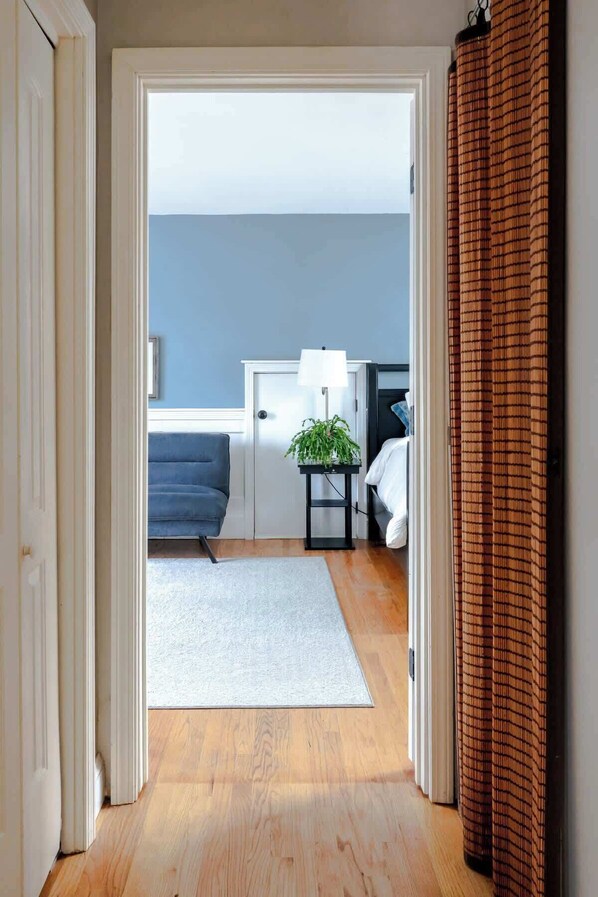 Loft was very clean, neighborhood was quiet. Except for the house we were staying in. We found out at the end of our stay that the family below us was the owner’s daughter and was visiting for the week. We then understood why we felt as if we were intruding in this home throughout our stay. Children yelling, running in the house, scooters everywhere in the yard, multiple cars. At times it was hard to pull out of the driveway due to the quantity of cars, bikes, and mopeds. At one point our designated spot was occupied but we were not allowed to park on the street. Our dogs were very nervous with the noise so even though they were crated, we cancelled much of our plans. We were there for our son’s regatta at Fort Adams and needed to be close to the park due to launch times. Typically we stay at another location farther away.,Even though the location to Fort Adams was terrific, and we are in Newport on a monthly basis, we would not stay at this property again. We have no way of knowing if this was a one off or regular occurrence.