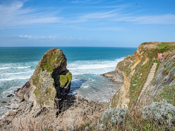 Dank der ausgezeichneten Lage in Newquay ist dieses Ferienhaus zu Fuß nur 10 Minuten entfernt von: Whipsiderry Beach und Porth Beach. Ebenfalls in einem Umkreis von 2 km: Strand von Lusty Glaze und Watergate Bay.