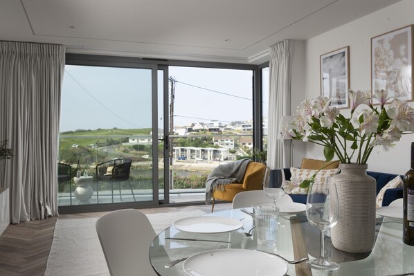 Beautifully designed and furnished, Number 4 creates an exceptional base from which to enjoy all that this famous slice of surf-lined coast has to offer. Inside, you'll find a tastefully styled, airy retreat curated for comfort and entertaining. The open-plan living space with its sleek kitchen and dining area is perfect for being together, whether you're relaxing, cooking, or sharing a meal. Floor-to-ceiling glass makes the most of the views and floods the space with natural light, while doors open onto a sun-drenched balcony, ideal for watching the waves over a morning coffee, or sunsets with a glass of bubbly.