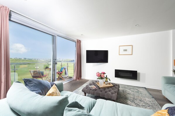 If you're on the lookout for the perfect pad for your next Newquay holiday, 53 Zinc nails the brief. An airy open-plan entertainment space with a lounge / diner, and fully fitted kitchen all leading out to a sea view balcony, as well as three terrific bedrooms each with their own features. There's the en-suite master bedroom with its balcony and views over the golf course, and a twin, also with its own balcony. The children's bunk room with sea views has a workspace with desk and chair, which is ideal for anyone who still needs to catch up on their emails.
