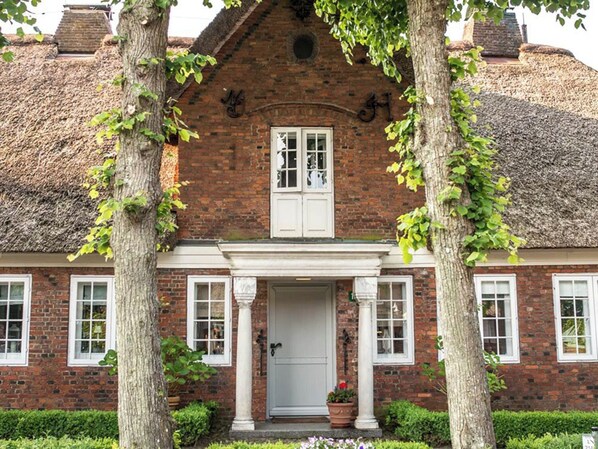 Das 146 qm große und repräsentative Erdgeschoss des Kommandeur Hauses verfügt über ein luxuriös eingerichtetes Wohnzimmer mit einem antiken Kachelofen und eine voll ausgestattete Küche im gemütlichen Landhausstil. Das angrenzende Esszimmer mit den historischen Deckengemälden beeindruckt durch einen direkten Blick in den weitläufigen Garten. Daneben finden sich im Erdgeschoss noch das idyllische und gemütliche Kaminzimmer und zwei Schlafzimmer. Im oberen Stockwerk, das sich über eine Fläche von mehr als 100 qm erstreckt, bieten insgesamt 4 Schlafzimmer genug Platz für Gäste. Ein luxuriös ausgestattetes Bad und eine Infrarot-Sauna sorgen für Wellnessmomente. Ein lichtdurchflutetes Büro, um ungestört arbeiten zu können und ein herrliches Freizeitzimmer für Yoga oder Familientischtennis bieten Raum für die Erfüllung unterschiedlichster Bedürfnisse. Der über 1000 qm große, blickgeschützte üppige Garten verfügt über eine möblierte Terrasse mit Liegestühlen und Strandkorb.