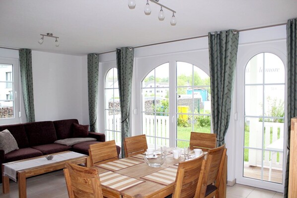 Im Duschbad finden Sie eine Waschmaschine und die offene Küche im Wohnzimmer ist mit allen technischen Geräten ausgestattet, die Sie für einen gelungenen Urlaub benötigen, inkl. Geschirrspülmaschine. Das Wohnzimmer hat einen gemütlichen Couchbereich mit Fernseher und Radio+CD und kostenlosem WLAN.