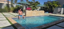 Pool was beautiful as was the whole private and beautifully decorated back yard. Room was comfortable, quiet, clean and stocked with everything we needed. Host "Theshwin" was very helpful and resonded quickly to any questions we had. Price was very reasonable and location was perfect. Highly recommend and would totally book with them again if in the area.