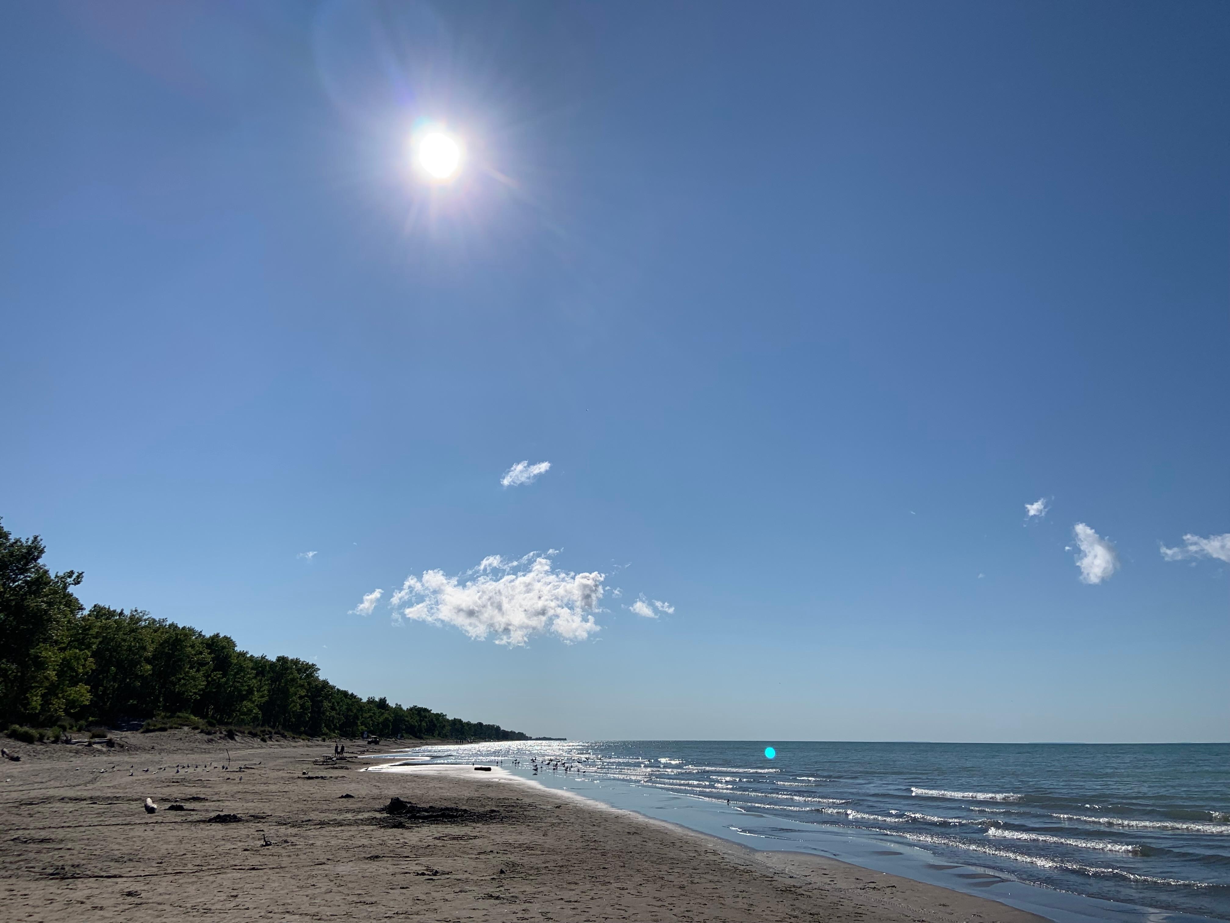 Lake Erie can be unpredictable, so please exercise caution when entering and swimming in the lake, as the waves can bring in sticks, rocks and debris. At our beach, it is rocky entering the water, but about 8 feet out, it has a sandy bottom. Long Point Provincial Park has a sandy entry.