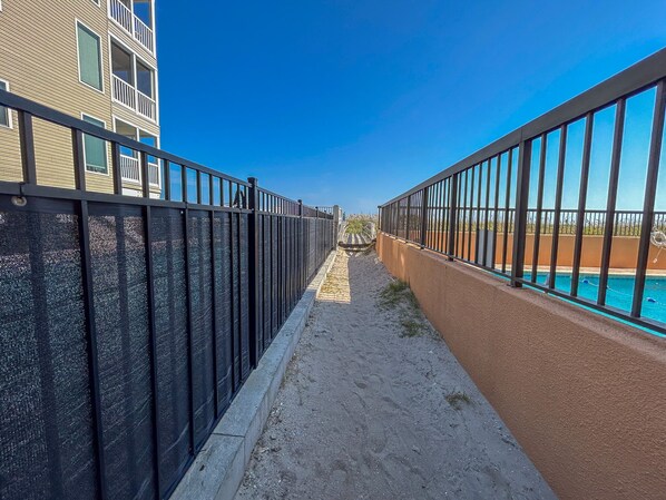 We absolutely loved our time here. If you want to be close to the beach this property is for you! You are steps away from the beach. The view is just like in the pictures. In any part of the common space you are surrounded by a panoramic view of the ocean. The property was very neat and clean. The kitchen has any dish, pot or pan you could ever need. For six it was plenty of space. You are also in an excellent location very near to grocery stores and the tanger outlets (we Ubered there for $13 each way). The only cons I would say is parking is a bit tight and it’s on the second floor with no elevator so hauling everything at the beginning and end of your trip is a bit of a chore, but totally worth it! I can’t comment on the pool as we didn’t go since our girls are in love with the beach and we were there for 4-6 hours everyday. But you are close enough to see your family on the ocean and it isn’t a big deal to run back for drinks/snacks. We spent our evenings just sitting on the screened in porch and listening to the ocean. Highly recommend staying here. It was beautiful!