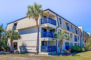 Beach days are a joy here, with beach chairs, towels, toys, and an umbrella provided for your use. Upon your return in the afternoons, you can toss your swimsuits in the coin-operated washer/dryers, sip cold drinks on your patio, or unwind in the comfort of air conditioning.