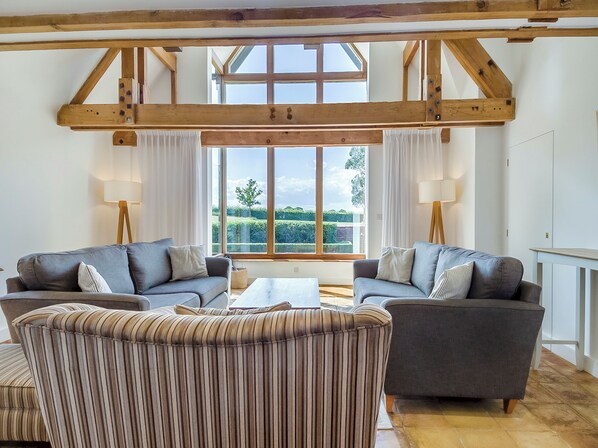 Bathroom: Bath With Shower Over, Heated Towel Rail, Toilet. Oil central heating, gas, electricity, bed linen, towels and Wi-Fi included. Initial fuel for wood burner included. Highchair. Welcome pack and doggy extras. Enclosed back garden with sitting out area, garden furniture and gas barbecue. Grounds (shared with owner). Tennis court (shared with owner). Hot tub for 6 (private). 2 dogs welcome, to be kept on a lead at all times. Private parking for 5 cars. No smoking. Please note: This property has direct access to an unfenced lake on-site.. This exceptional cottage offers an idyllic retreat for large families and discerning friends, surrounded by large extensive meadows, seeded with wildflowers, a tennis court and large lake. Designed with elegance and relaxation in mind, it seamlessly blends rustic charm with modern indulgence, providing the perfect setting for unforgettable gatherings. Step inside to discover beautifully appointed accommodation boasting exposed beams. The lounge area is perfect for socializing, with comfy seating, a wood burning stove to cosy beside on cooler evenings. The secondary lounging area boasts a large double height window that floods the rooms with natural light and unspoilt views across the garden and open countryside beyond. The fully equipped kitchen makes meal preparation a pleasure, while the dining table ensures memorable feasts with loved ones.