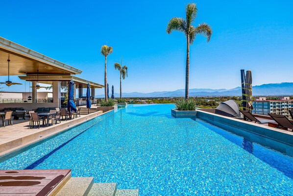 Hat Mountain-view apartment near beach with balcony, rooftop pool, gym, & Ping-Pong einen Pool?