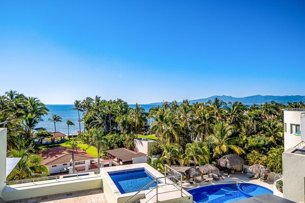 Ocean-view penthouse with private plunge pool & terrace, resort pool