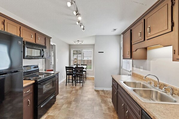 Great place to enjoy while visiting. Only minutes from Fort Campbell, KY, Clarksville, TN, Interstate, shopping, Horse Race track and more. Master bedroom has a walk in closet with full bathroom, King size bed and smart TV. There is a playpen and high chair for traveling family's. This house is roughly 1395 square feet and very spacious for a great stay.