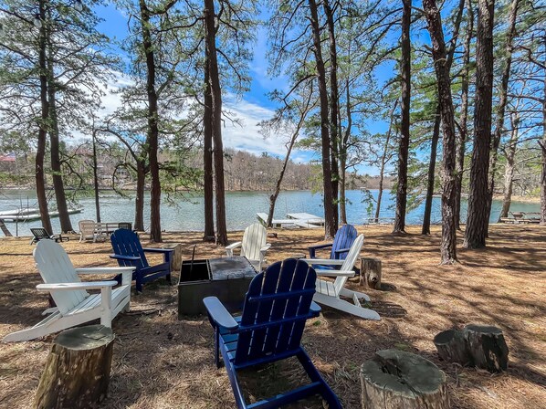 The interior is bright and airy, and decorated in a charming cottage style that is immediately inviting. The single-level floor plan is ideal for sharing quality time with your favorite people. Gather together in the great room to enjoy lake views from the comfort of the sectional sofa or cook up a storm in the adjacent, eat-in kitchen that features a farmhouse sink, ample counter space and all the essentials for making delicious meals. You can also cook on the grill outdoors, and eat at the picnic table as you watch boats cruising by.