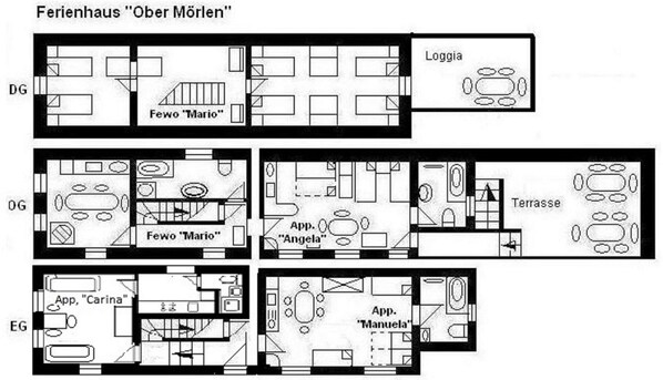 Ausstattung: Alle Wohnungen sind Allergiker geeignet, haben einen separaten Eingang, SAT-TV, komplett eingerichtete Küchenzeilen mit Kühlschrank***, Herde mit Ceranfeld und Backofen sowie Dunstabzugshaube, Spüle, Kaffeemaschine, Mikrowelle, Geschirr, etc. Alle Bäder haben Tageslicht und Wannenbad/ WC (in „OM4 = Carina nur DU/ WC). "OM3 = Mario" verfügt darüber hinaus über einen Geschirrspüler und einen Esstisch in der Wohnküche, sowie eine zusätzliche Dusche im geräumigen Bad.