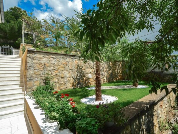2-Zimmer-Wohnung 45 m2 im 1. Stock, Südlage. Schön und modern eingerichtet: Wohn-/Esszimmer 20 m2 mit 1 Doppeldiwanbett und Sat-TV (Flachbildschirm), Klimaanlage. Ausgang zum Balkon. 1 Zimmer mit 1 Doppelbett (160 cm). Ausgang zum Balkon. Offene Küche (4 Kochplatten, Backofen, elektrische Kaffeemaschine). Dusche/WC. Keine Heizmöglichkeit. Balkon 8 m2, Südlage. Terrassenmöbel. Herrliche Sicht auf das Meer. Zur Verfügung: Internet (Wireless LAN, gratis). Bitte beachten: Private Bootsanlegestelle (extra). Zugang zur Wohnung über 5 Stufen vom Parkplatz.