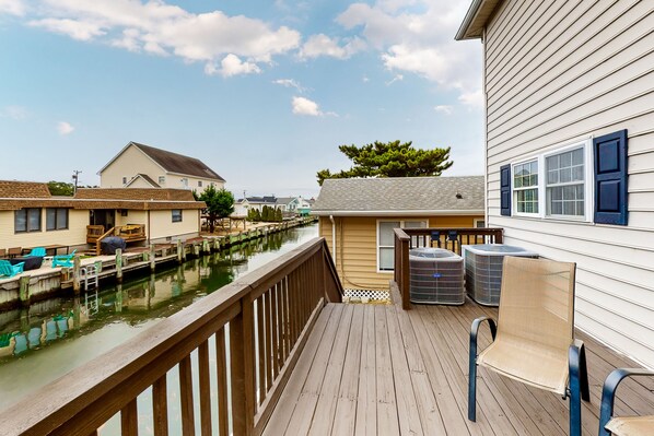 This five-bedroom, three-and-a-half-bath, multi-level single-family home is unlike most you've seen. Located canal front adjacent to Coastal Highway, this home is close to the beach. The home offers two kitchens (one on each level), a lower level bedroom with a full bath, multiple living areas on both levels allows for space to spread out while enjoying vacationing with the ones you love. A two-car parking garage plus driveway parking supports a total of four mid-sized cars. Enjoy a long southern exposed canal front back deck, two upper balconies (one faces south, the other north), boat dockage, wireless internet, central air conditioning, washer/dryer, dishwasher, microwave, and cable TV.