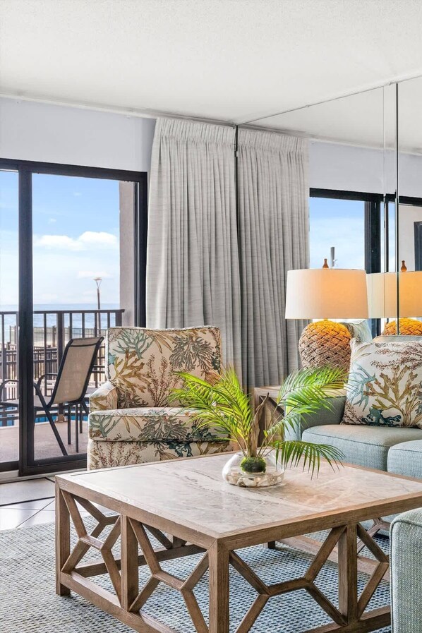 Step into a bright, oceanfront living space designed for relaxation and togetherness.