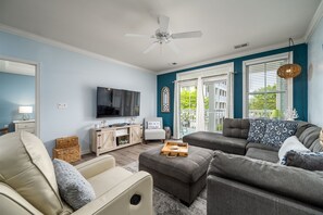 We had a very enjoyable stay at this condo! The location was great. It was in easy walking distance to all the community amenities, as well as local restaurants outside of community. The condo itself was lovely, clean, decorated, and organized nicely. The queen beds were firm, but that was to our liking and it was actually one of the more comfortable beds we've had on vacation. The property manager was very responsive and quick to help when needed. We would absolutely love to stay here again.