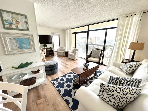 Our family condo has recently been remodeled and is ready for your stay. We are just steps from the beach. Enjoy the large private balcony. Perfect for sunrise/sunsets, morning coffee and evening happy hours from the fifth floor . Conveniently located across the street from the Convention Center and only 15 blocks from the famous Ocean City Boardwalk. Also within walking distance to restaurants, bars, shopping, Jolly Roger water park, rides and mini golf. Ocean block living at its finest.