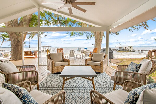 This is our second year staying at this home . Absolutely the best . The porch is so nice to watch the beautiful sunsets ! Everything was perfect . Very clean . Nice beachfront for the grands to play .Garrison , our host was the best ! Great communication and very prompt with any questions I had . We will be back next summer! Highly recommended!
