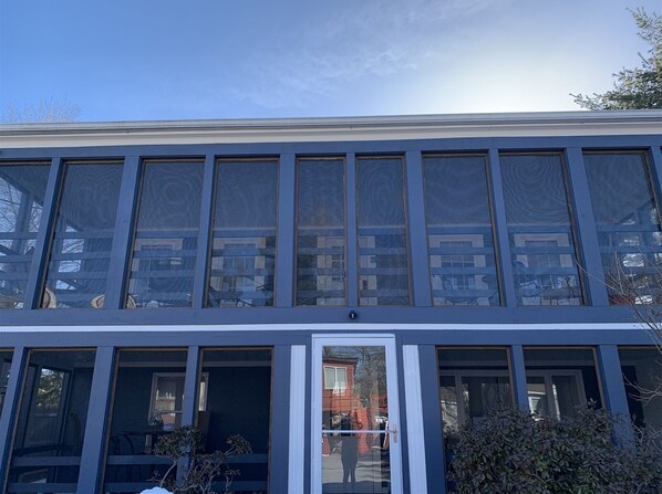 This 3BR / 1.5 Bath top floor condo is located on a quiet street in Old Orchard Beach, yet is walkable to the Pier and amusements! Property has a large screened-in front porch as well as a back deck and a fenced-in side and back yard. This property is a duplex, but each unit has its own private outdoor space and its own grill. The living room has ample seating and a large flatscreen TV and a firestick that can be used to access your personal subscription accounts (ie: Netflix). There is a large eat-in kitchen with a door to the back deck and BBQ grill. There is a heat pump with air conditioning that can cool the entire condo if the bedroom doors are left open. The bedroom set-up is perfect for a family of six. The first bedroom has a queen bed, the second bedroom has two twin beds, and third bedroom has a bunk bed. The full bathroom has a tub-shower combo and there also a half bath (no tub). There is also washer and dryer.