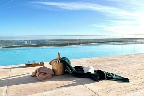 Beautiful modern apartment in a luxury residence facing the sea. Comfortable and spacious spaces, 2 swimming pools, one of which is heated with a view over the Ria Formosa, an ideal place for your stay in the Algarve, just a few steps from the historical center of the town of Olhão. Two bedrooms and their bathrooms will be at your disposal, a sofa bed for an extra bed and a small terrace ideal for your breakfast in the sun.