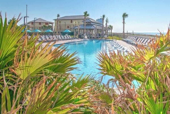Sink into pure beachside bliss at this Gulf-front retreat, designed for ultimate relaxation and fun. Floor-to-ceiling windows bring the ocean vibes inside, while a spacious living area, dining room, and stocked kitchen make it easy to chill. Three cozy bedrooms, each with a private bath, offer the perfect retreat. Step onto the balcony, hit the pools, or unwind in the hot tubs. With top-notch amenities and pure beach bliss, this is the ultimate coastal getaway!