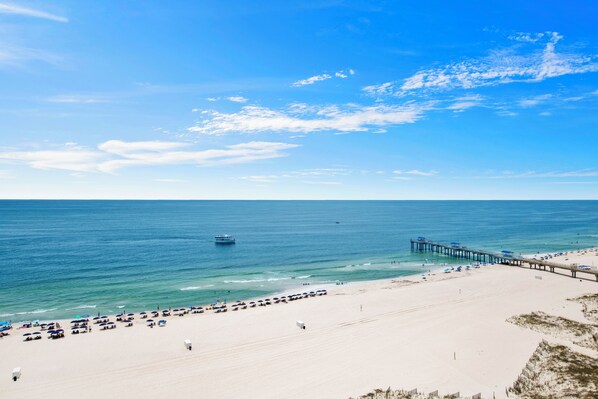 The Gulf-front Admirals Quarters sits half a mile east of the center of Orange Beach, where you'll find a Publix Super Market and an assortment of restaurants, eateries, and conveniences. Take tranquil morning walks through Gulf State Park just over a mile west, book fishing charters and boating excursions out of the Orange Beach Marina two miles northeast, and catch a glimpse of nesting sea turtles at Perdido Key State Park seven miles east. You'll also be an easy drive from Adventure Island, The Wharf, and local favorites like The Flora-Bama, Big Beach Brewing, Pleasure Island Tiki Bar, and Fisher's Dockside.
