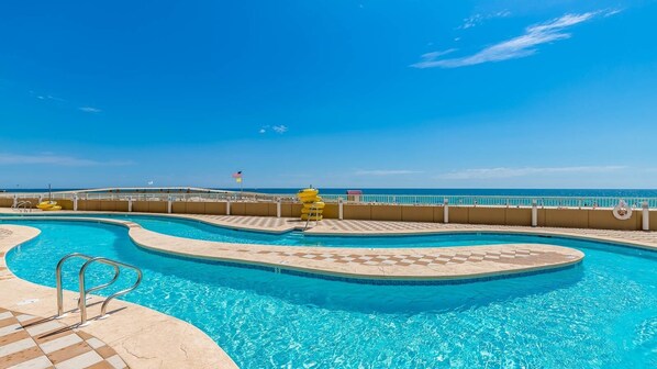 Diese Ferienwohnung am Strand mit Außenpool, 6 Minuten zu Fuß von Gulf State Park