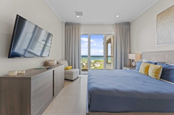 Das Hauptschlafzimmer verfügt über ein Kingsize-Bett, einen TV, Einbauschränke und Zugang zum Balkon mit herrlicher Aussicht. Das Hauptschlafzimmer bietet ein komplettes modernes Bad. Das zweite Schlafzimmer verfügt über ein Queensize-Bett, einen TV und Einbauschränke. Das zweite Schlafzimmer bietet auch ein voll modernes Bad.