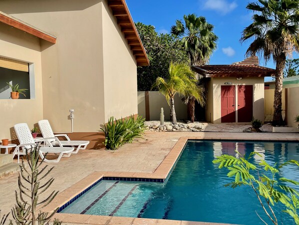 We absolutely loved our time in this house. Last year we rented at Vistalmar for a week, but this year we wanted to stay for a month and host friends & family, while working remotely part-time. The house is very well located - central to everything, close for airport pickups & CMart runs, and away from the hordes of tourists at Palm Beach. Nothing on the island is more than 25 minutes away from here, but you will need a car. One of our favorite things is how safe Aruba is for exploring different beaches, hiking trails, and food. There were three beach chairs and a cooler at the house, and we brought a beach shelter from home so we were ready for any adventure.