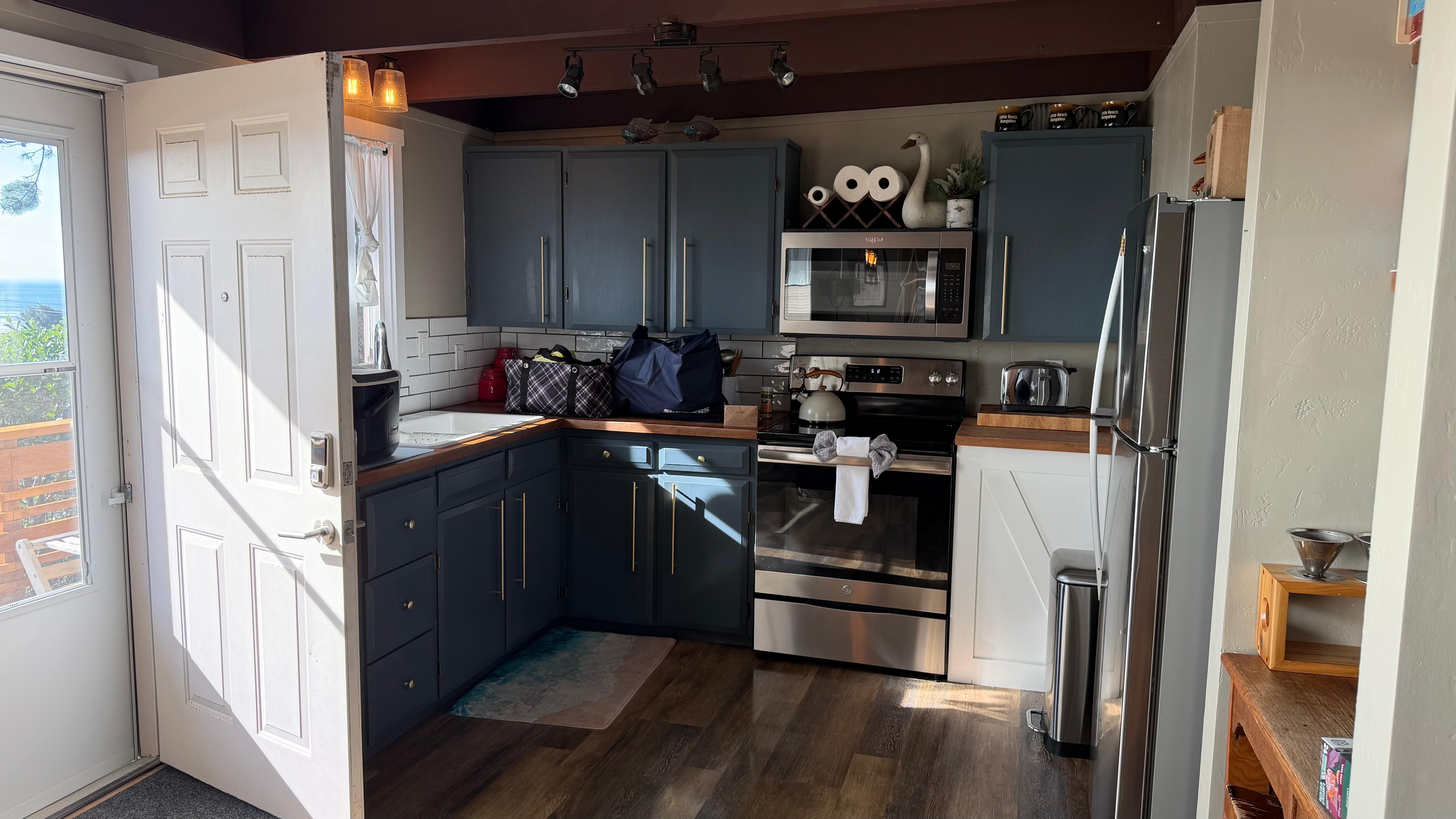 Die Küche ist gut ausgestattet mit einem großen Kühlschrank und Herd / Backofen / Mikrowelle. Eine Keurig-Kaffeemaschine mit Kaffee- / Teesorten.
