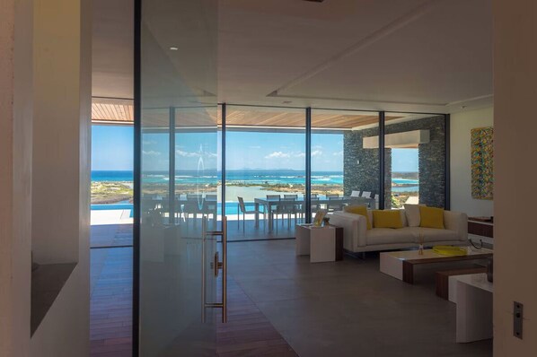 Villa O ist eine hervorragende Eigenschaft von 4 Schlafzimmern und 4 Badezimmern in Orient Bay in einer sehr privaten und ruhigen Residenz außer Sichtweite. Moderne Luxusvilla, erbaut Ende Juli 2017, sehr geräumig und modern im balinesischen und modernen Stil. Die Villa ist voll klimatisiert, das Wohnzimmer und die Küche haben unglaublichen Platz und öffnen sich zu den Pools mit Meerblick. Voll ausgestattete Küche mit High-End-Geschirr und Koch in extra, eine Bar mit Blick auf diese schöne Küche und einen Weinkeller. Das Wohnzimmer ist mit Sound-System, mehrere Leder-Lounge und Sessel ausgestattet. Die Terrasse ist sehr groß, mehrere Lounge-und Ruhebereich und ein schöner Esstisch mit Blick auf das Meer. Sehr schicke Liegen und Badestühle, Strandtücher und Solarprodukte. 4 schöne Master-Suite mit Meerblick für jedes, Ankleide und luxuriöses Badezimmer, alle sehr gut ausgestattet, hochwertige Badetücher und Bademäntel, hochwertige Spa-Produkte, Haartrockner, Haarglätter, offenes Bad mit Blick aufs Meer und Duschen im Freien. Ein Pool des Wahnsinns, Spiegel Weg zum Meer und ein zweiter Pool mit einem Cocktail mit Blick auf das Meer entspannen.