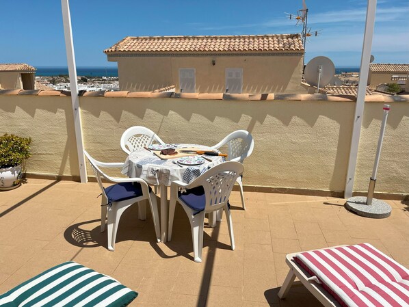 Cozy Modern apartment with private roof terrace for sun and dining al fresco.
