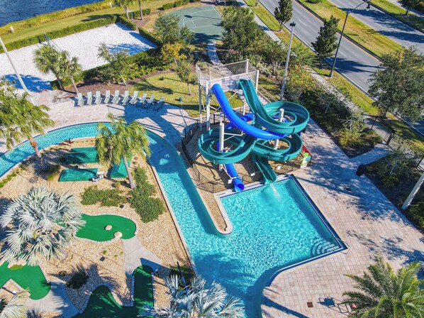 Guests enjoy full access to the home, private pool, and resort amenities, including The Hideaway Club and The Bronson Club with heated pools, lazy river, water slides, splash pad, sports courts, fitness center, and more. Some activities, like mini-golf and kayak rentals, require a fee.