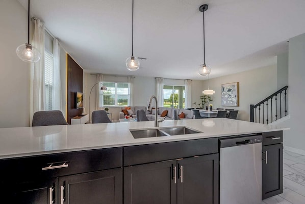 Everything was fine in general. The host was easy to contact. It was a comfortable, spacious place for our family. There were plenty of dishes. The reason for the 4 start and not 5 star was that I compare to other places that go above and beyond with supplies like extra towels/wash clothes, a set of pot holders and just little things that make a place feel like a second home. This was a nice place and felt like exactly what it was, a vacation rental. It met all of our needs and the host was responsive when we could not find a pack & play. The community pool area was very nice!!