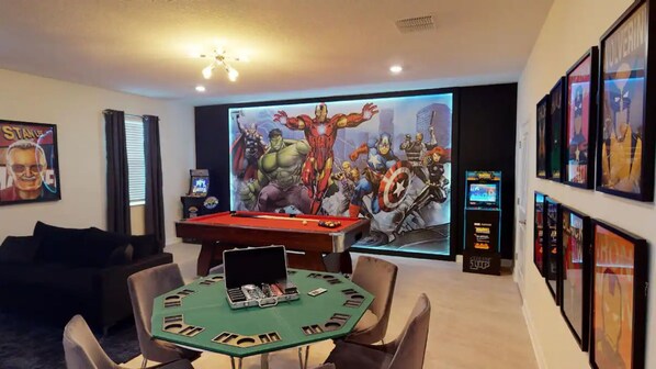 ✔ Exciting Game Room – Enjoy a Pokémon table, pool table, two arcades, and a big screen for non-stop fun!
